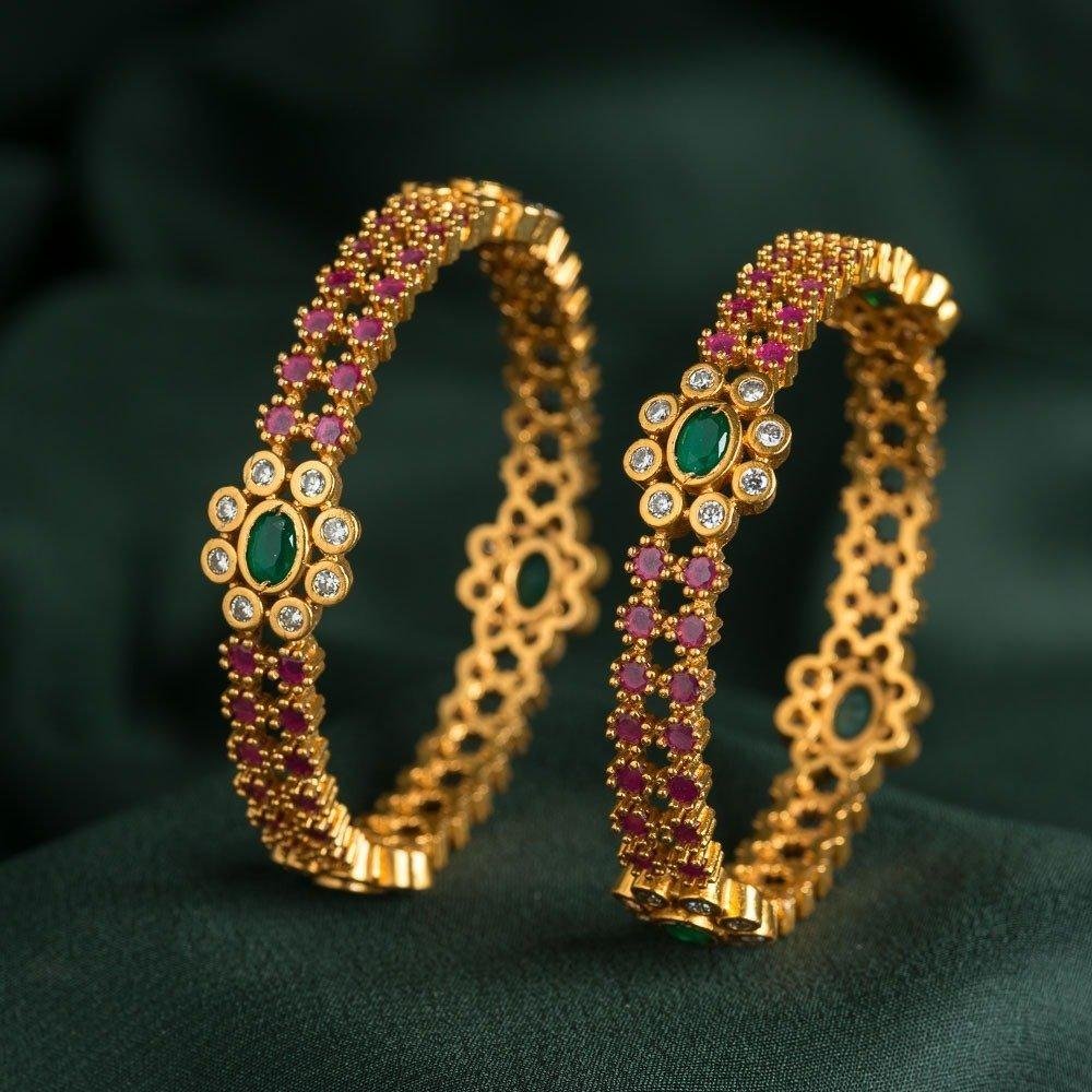American diamond ruby stoned gold plated exquisite stoned flora bangles.