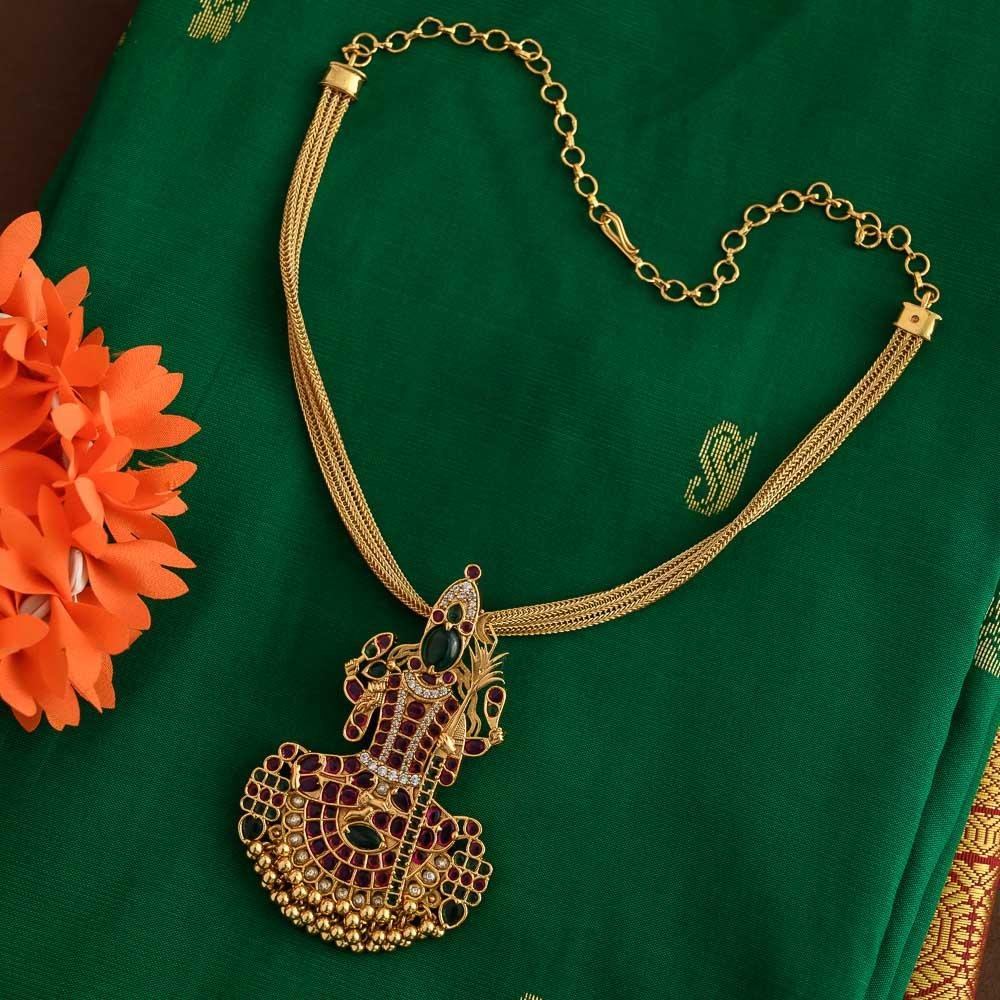 Antique gold finished exquisite and heavy kempu stone worked bold attigai chain