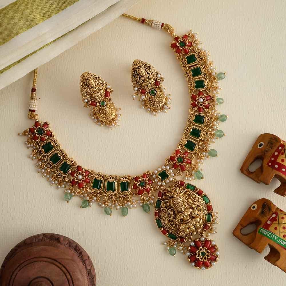Angaraka - temple designer coral neckpiece set-Priyanka - Nita