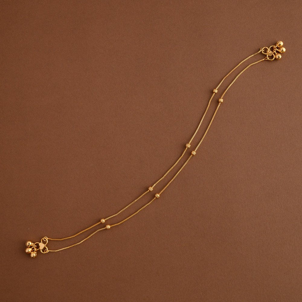 gold finished golden beaded work delicate anklet [10.5 inches]