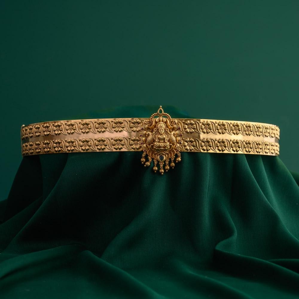 antique gold finished goddess lakshmi and floral designed bridal hipbelt