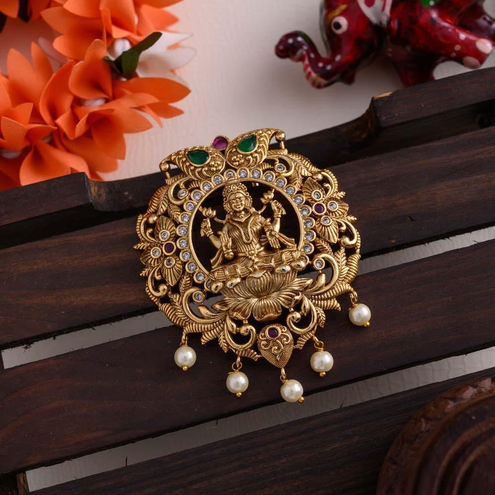 Antique gold finish goddess lakshmi designed jadabillai (hair choti)