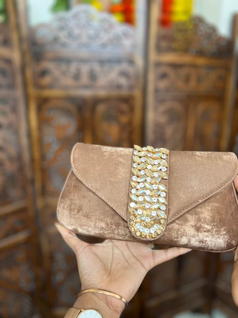 Add a touch of elegance to your special day with our exquisitely handcrafted bridal clutch bag. Designed with intricate detailing and premium craftsmanship, this clutch offers both style and versatility. The detachable handle allows you to carry it as a traditional clutch or wear it comfortably as a mini handbag, depending on your look.