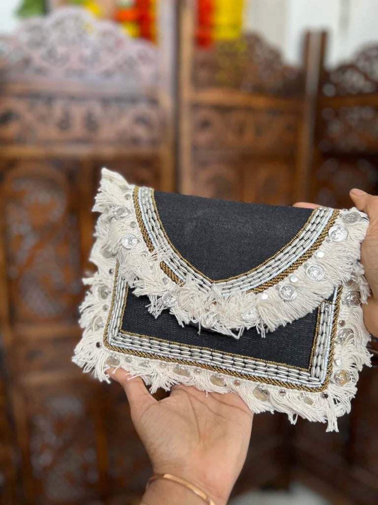 Add a touch of elegance to your special day with our exquisitely handcrafted bridal clutch bag. Designed with intricate detailing and premium craftsmanship, this clutch offers both style and versatility. The detachable handle allows you to carry it as a traditional clutch or wear it comfortably as a mini handbag, depending on your look.
