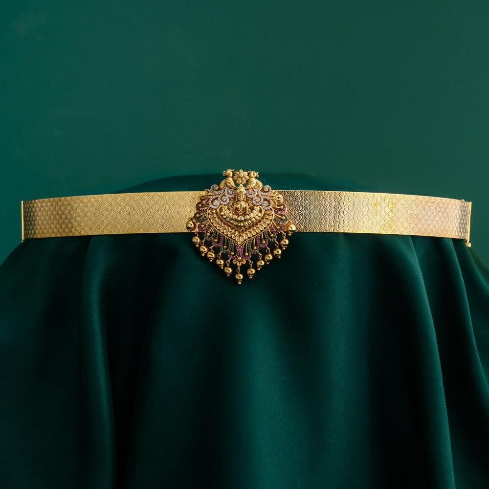 antique gold finished goddess lakshmi and peacock designed bridal hipbelt
