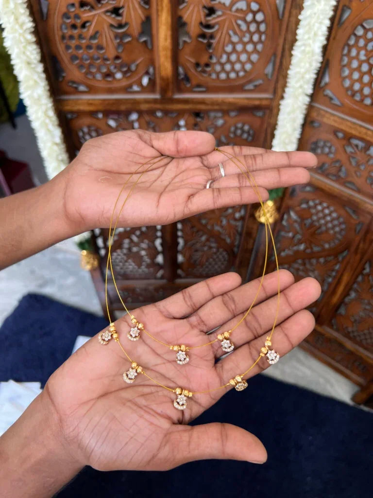handcrafted golden gear wire dual layered star moon stone worked invisible neckchain