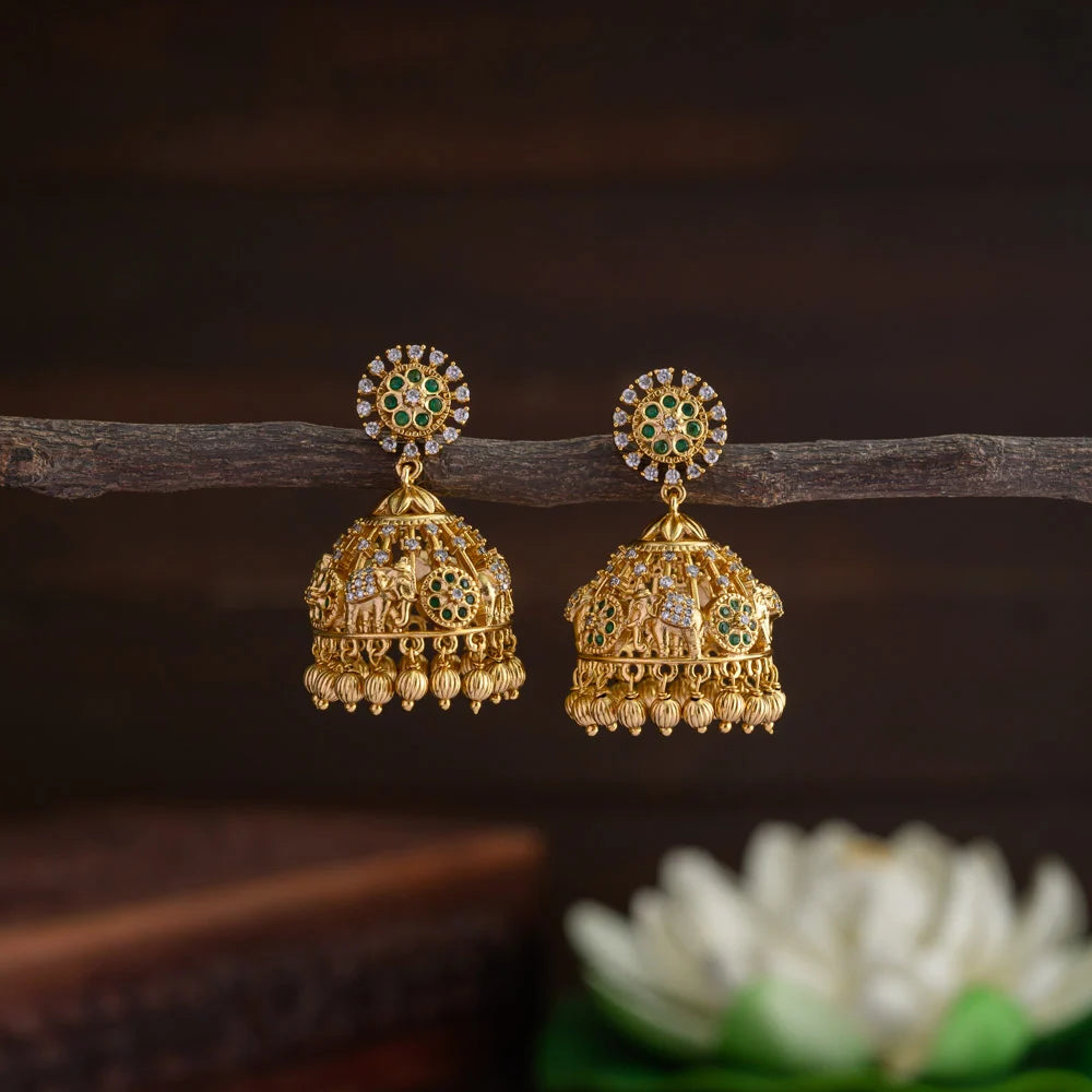 antique gold finished floral and elephant designed real gold inspired jhumkies