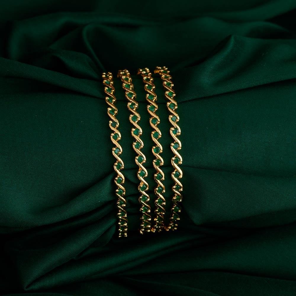 gold plated emerold green stoned vintage bangles (4 bangles)