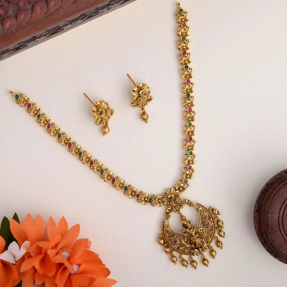 antique gold finished krishner and 3d floral designed real gold inspired neckpiece set