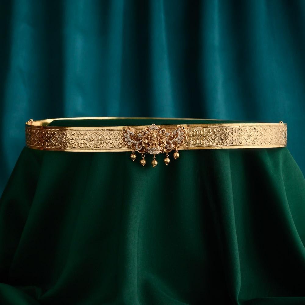 antique gold finished goddess lakshmi and peacock designed bridal hipbelt