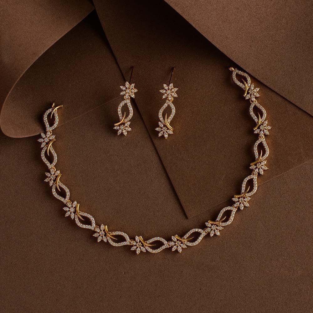 matte gold finished simplistic floral designed micro stone worked party wear set