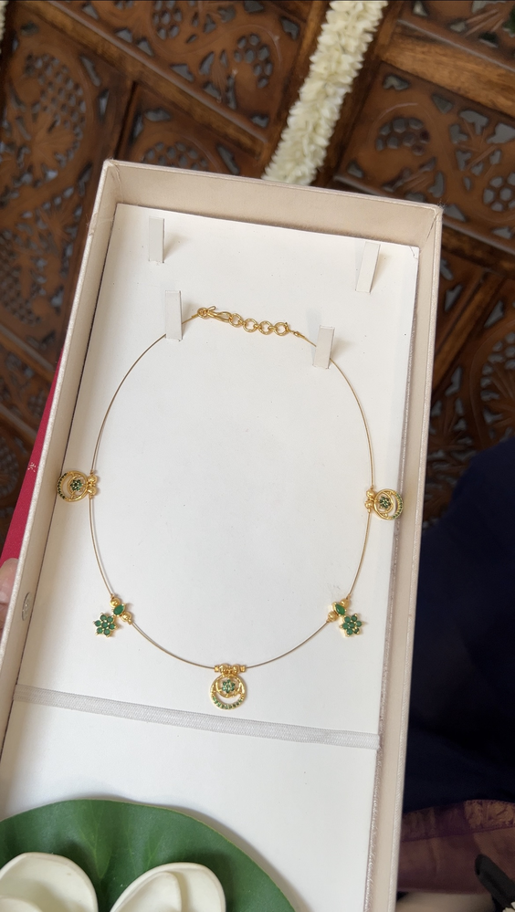 handcrafted golden gear wire american diamond micro stone worked sun moon charm and golden ball worked invisible neckchain
