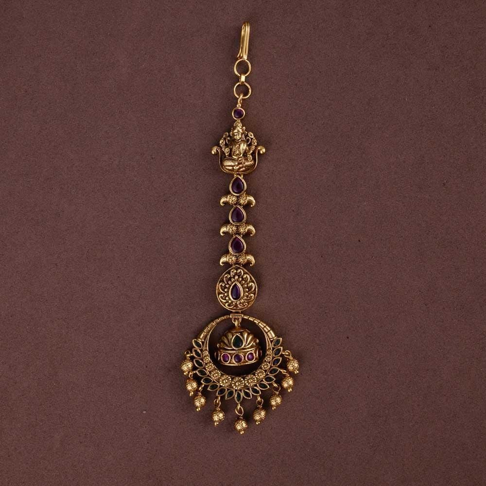 antique gold finished temple designer tikka