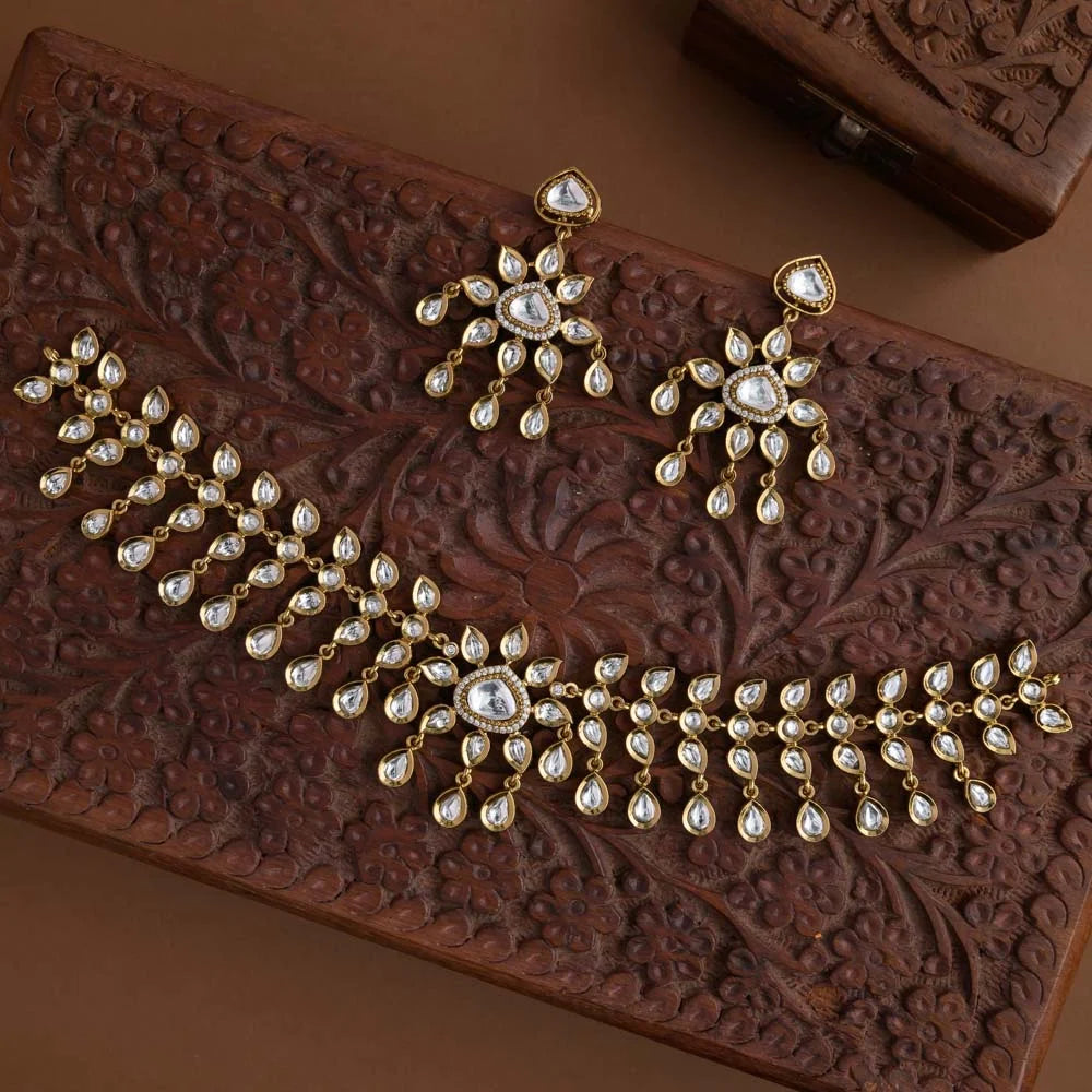antique gold finished premium kundan stone worked statement neck hugging super flexible choker set