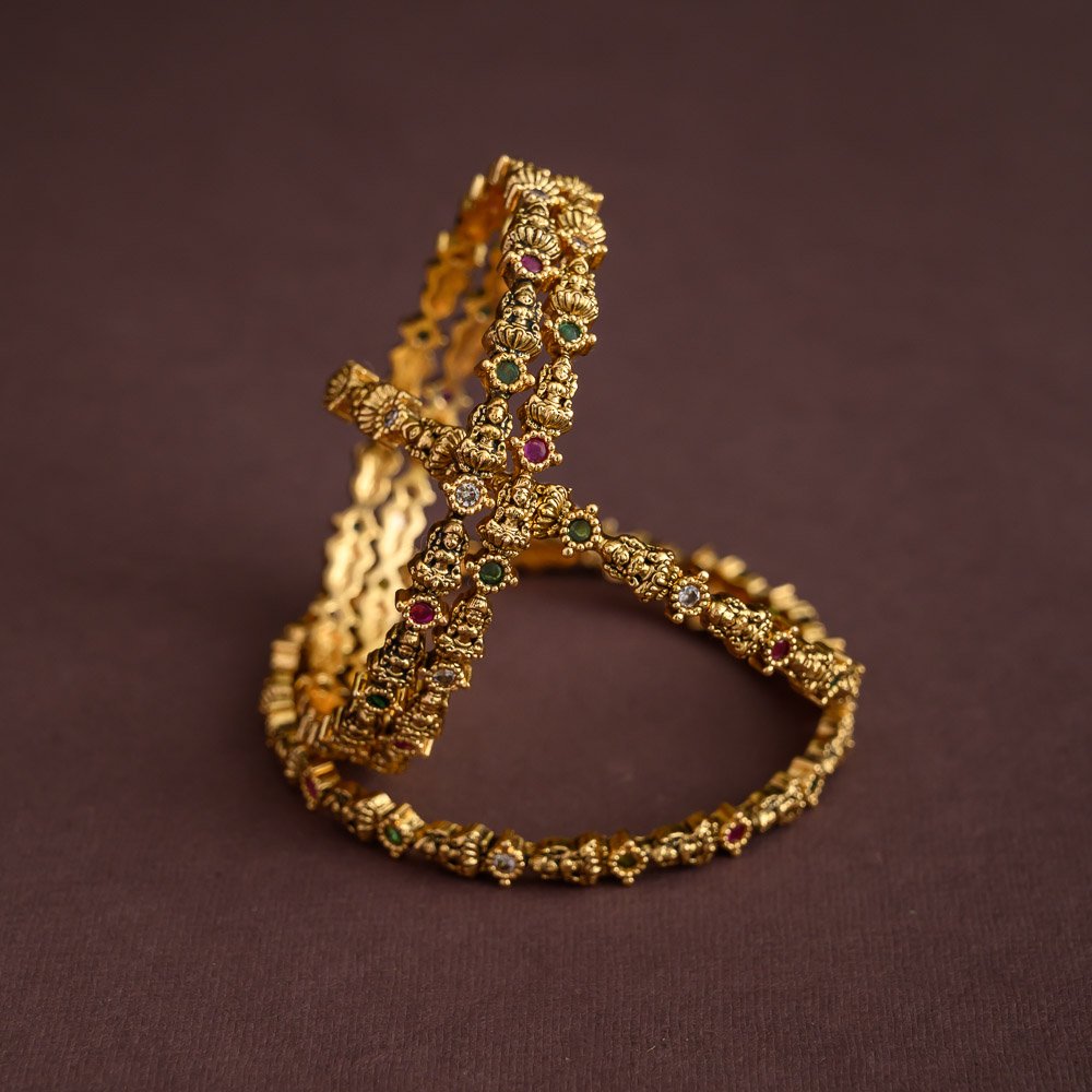 antique gold finished goddess lakshmi 3d pattern bangles
