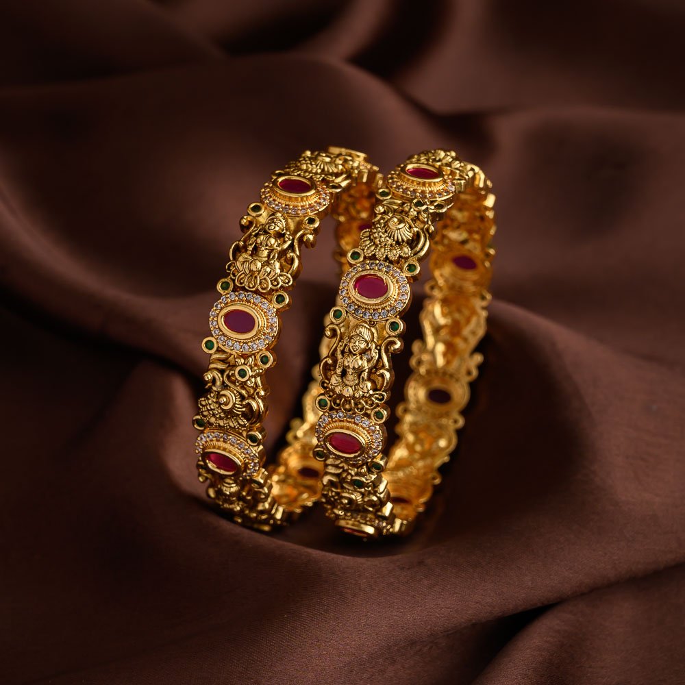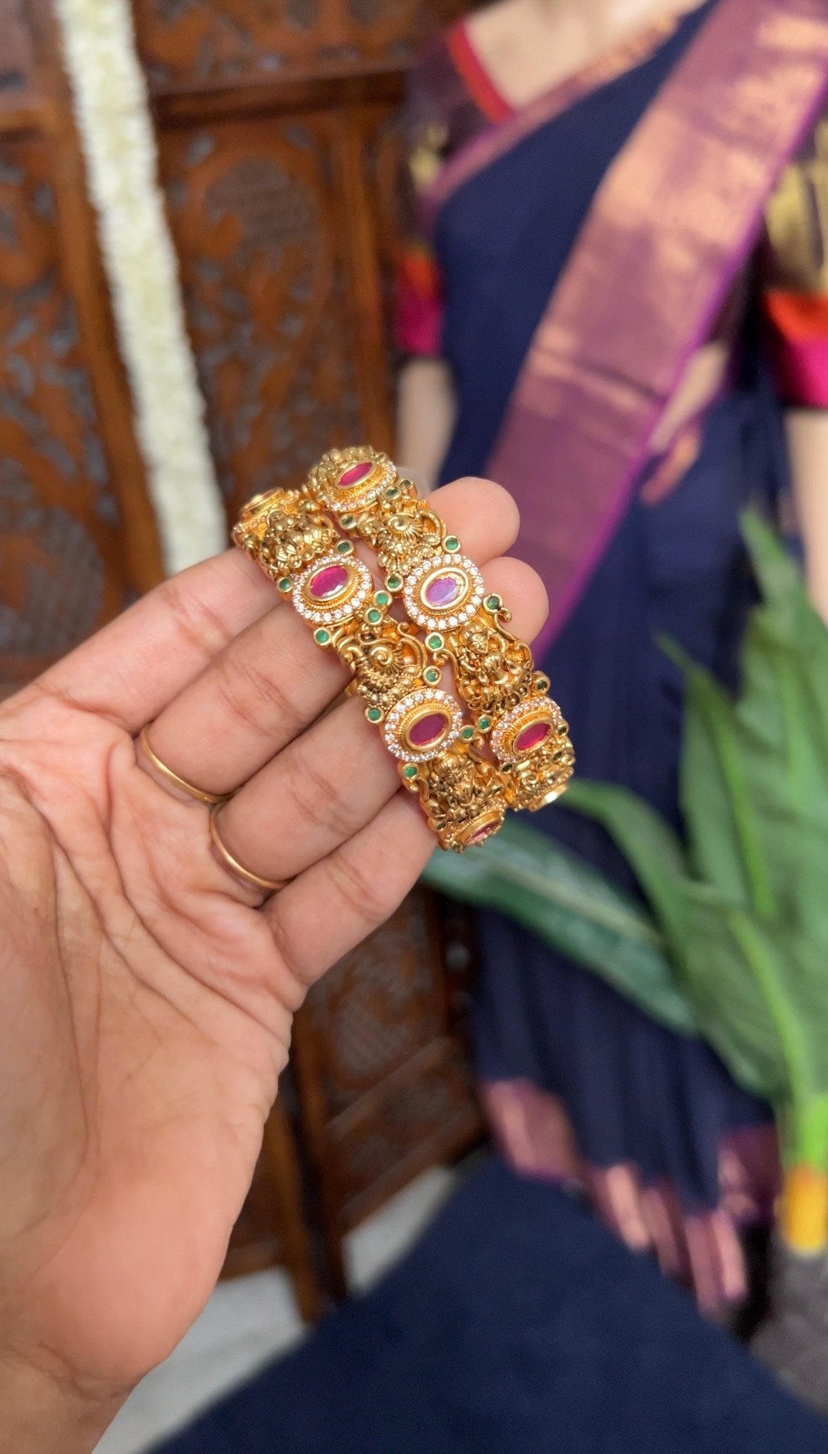 antique gold finished goddess lakshmi , peacock and intricate designed 3d bangles