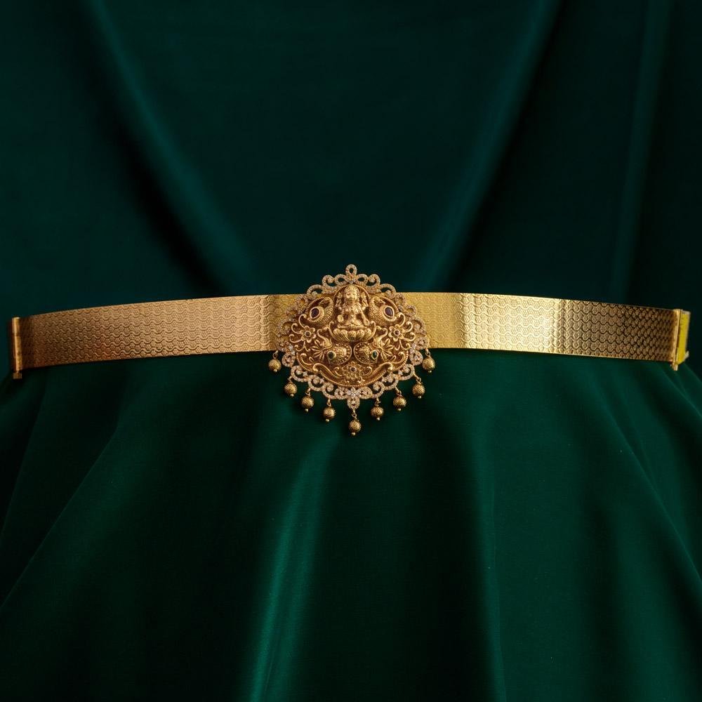 antique gold finished goddess lakshmi designed and peacock designed exquisite stone worked hipbelt