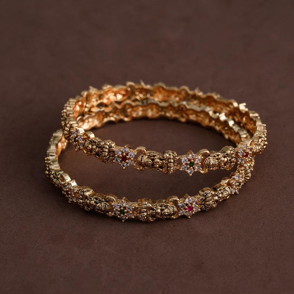 antique gold finished goddess Lakshmi and floral pattern bangles