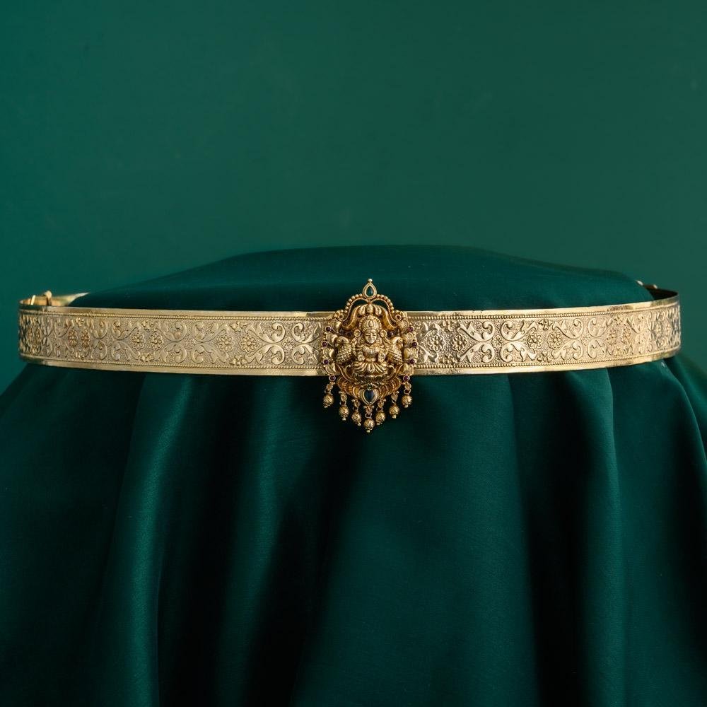 antique gold finished goddess Lakshmi and peacock designed hipbelt size 32 to 40
