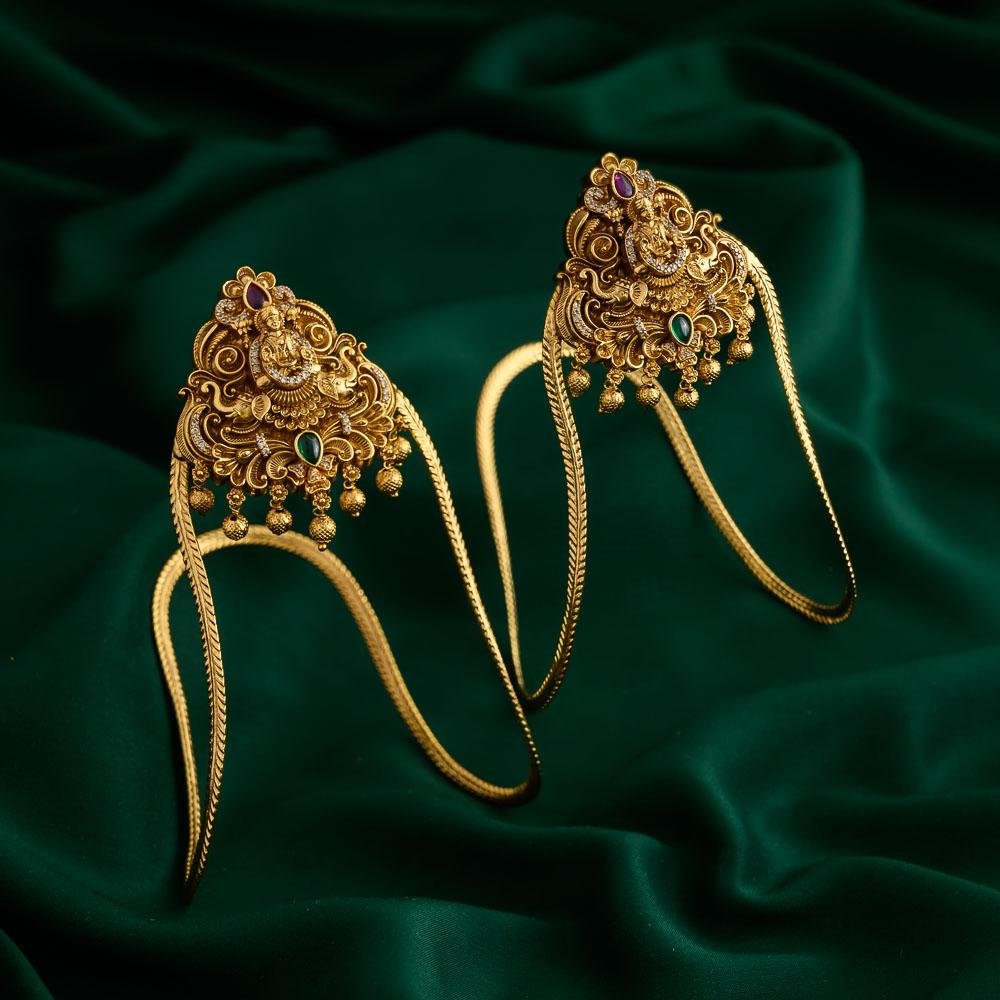 Antique gold finished goddess Lakshmi and peacock designed bridal vanki