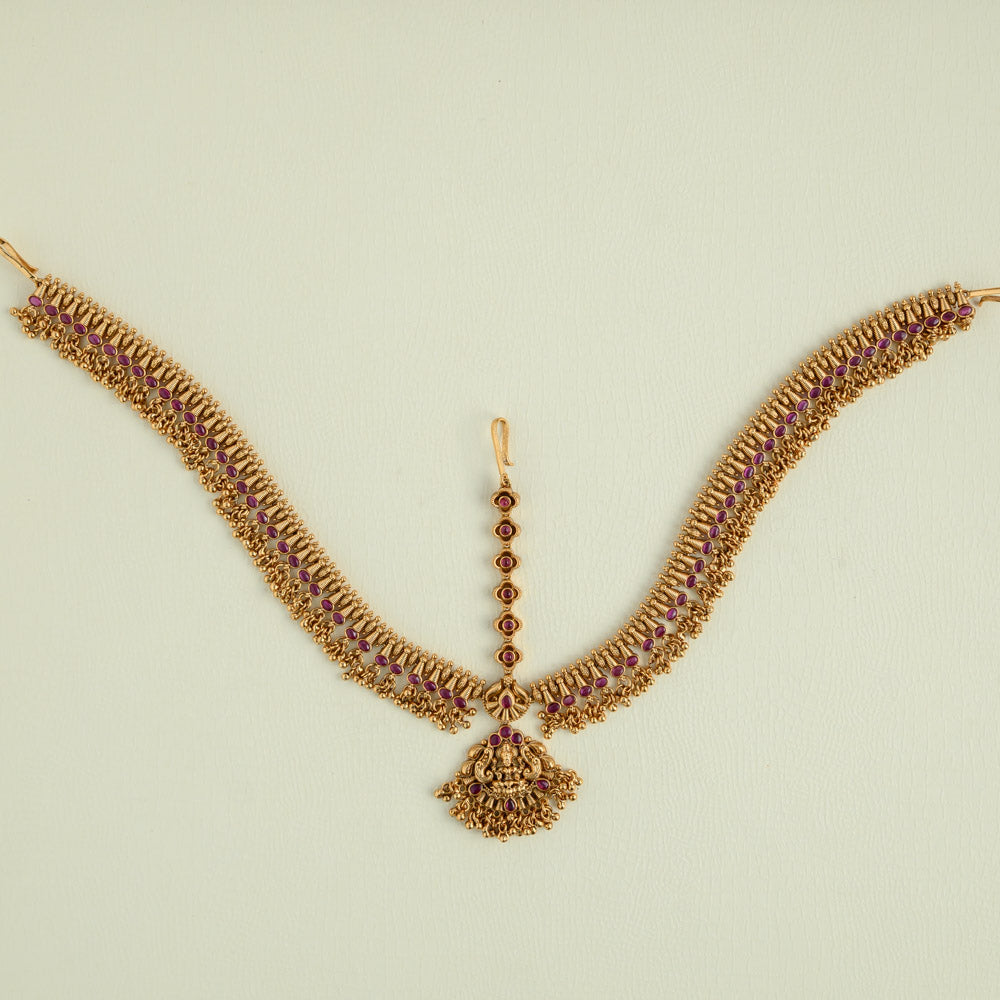 antique gold finished floral designed 3d worked bridal mathapatti