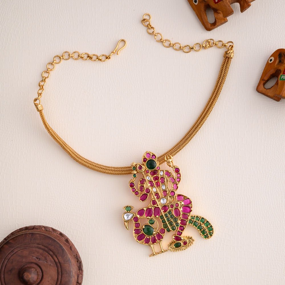 antique gold finished exquisite kempu and kundan stone worked pendant removable attigai chain