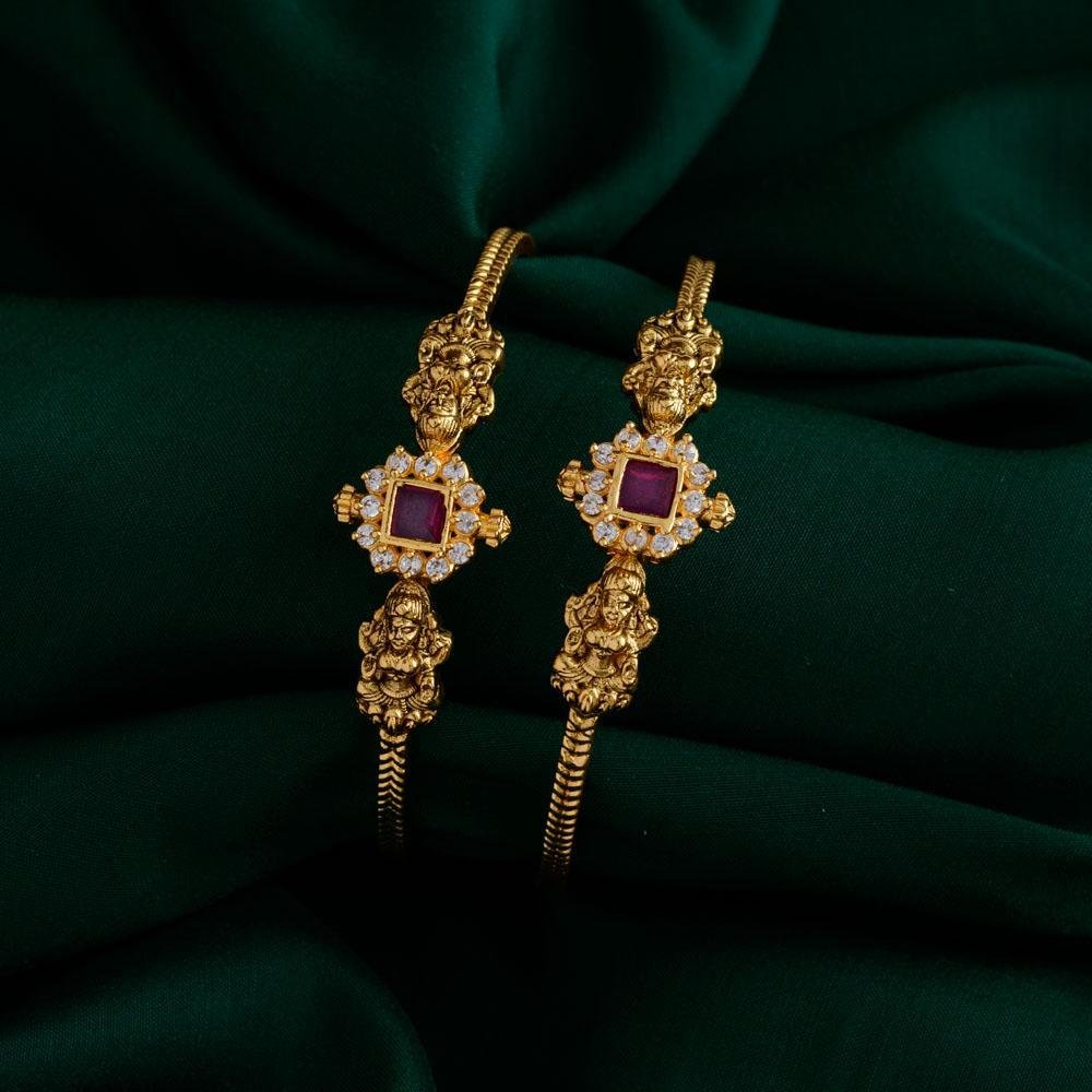 antique black gold finished goddess lakshmi pattern ruby stone worked bangle set