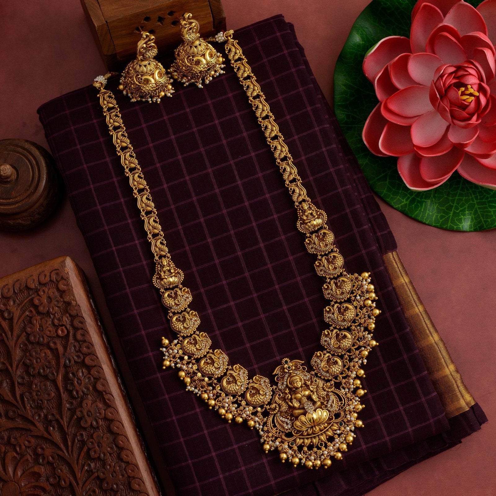 temple gold finished goddess lakshmi designed nakshi haaram set