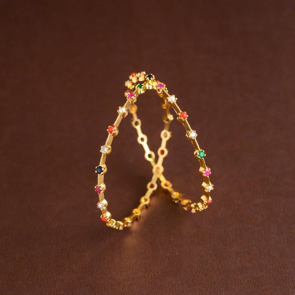 matte gold finished navarathna multi colour stone work minimalistic bangles