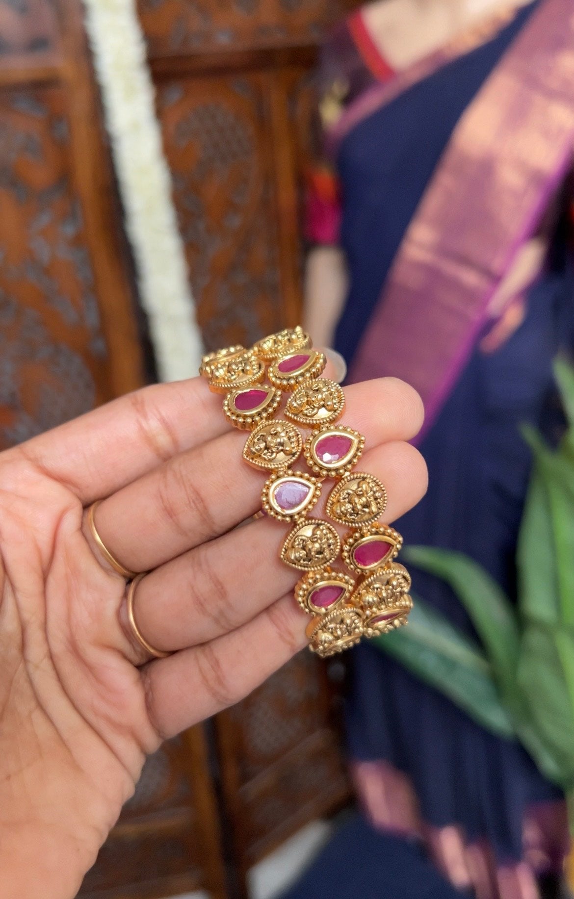antique gold finished goddess Lakshmi and thilagam pattern bangles