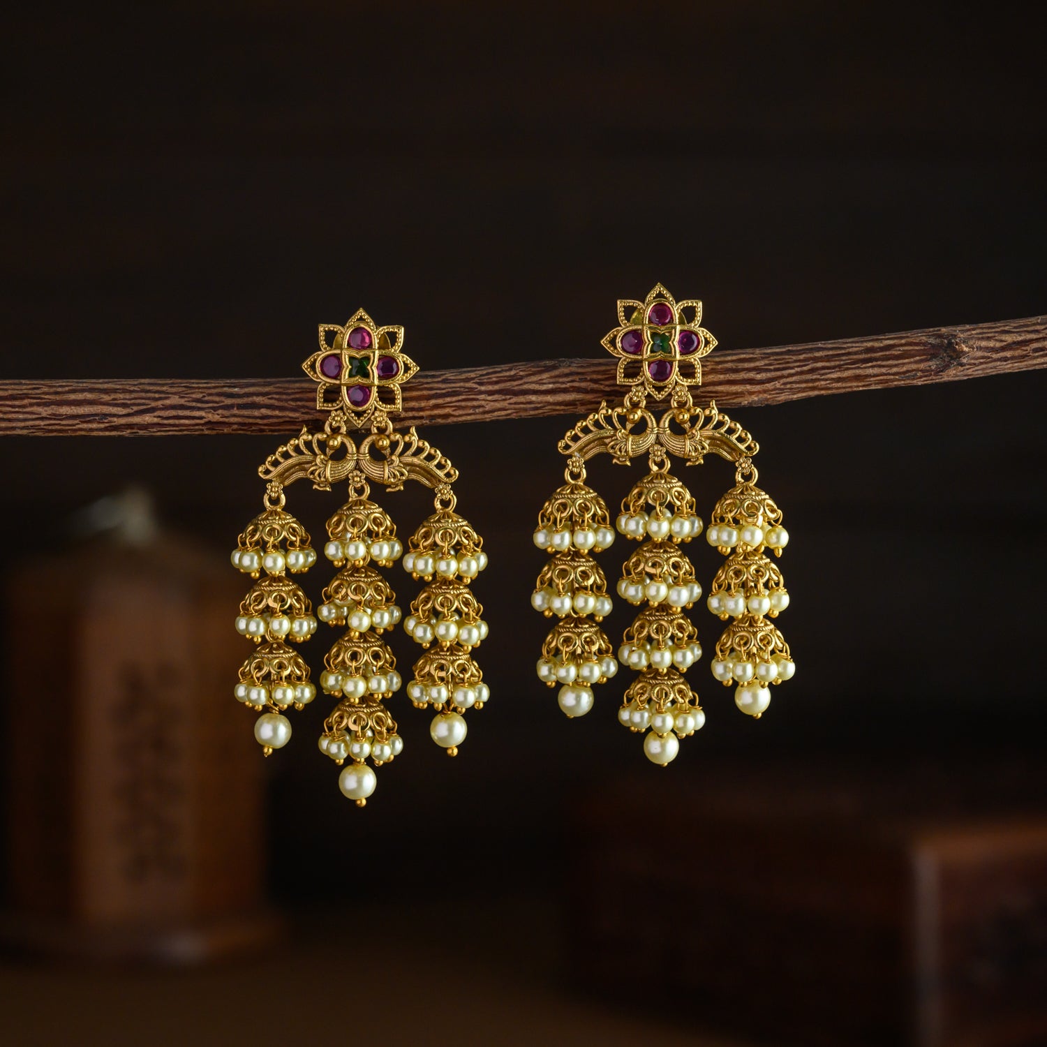 Peacock layered jhumkas - Swaro