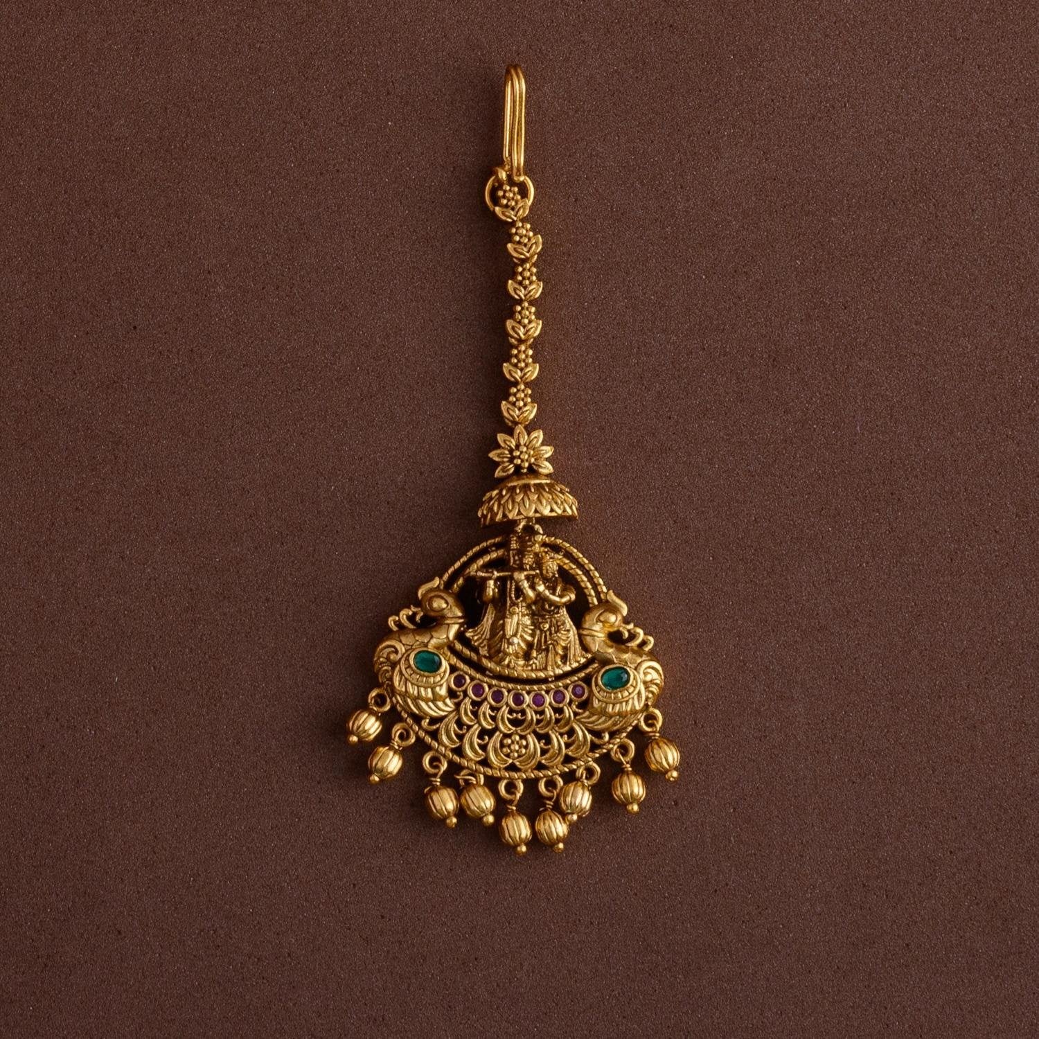 antique black gold finished radhe krishna and peacock designed tikka