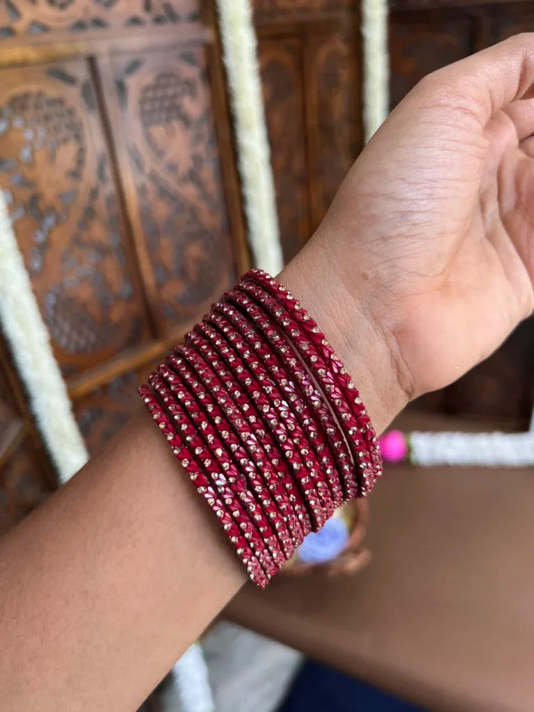 Crafted with precision, our handmade glass bangles blend tradition with elegance. Featuring vibrant hues, intricate patterns, and a smooth finish, they add a timeless charm to any look. Perfect for festive, bridal wear