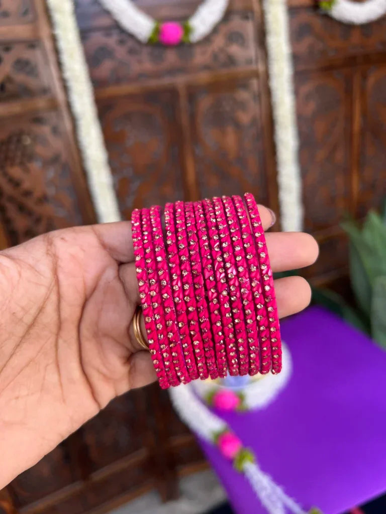 Crafted with precision, our handmade glass bangles blend tradition with elegance. Featuring vibrant hues, intricate patterns, and a smooth finish, they add a timeless charm to any look. Perfect for festive, bridal wear