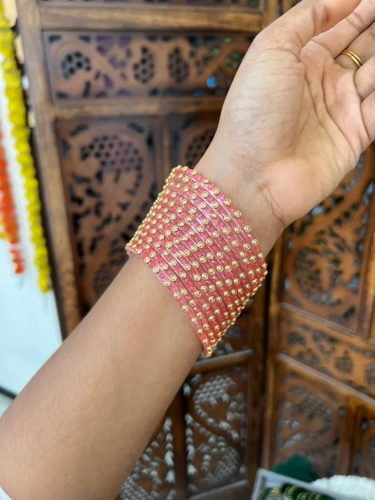Crafted with precision, our handmade glass bangles blend tradition with elegance. Featuring vibrant hues, intricate patterns, and a smooth finish, they add a timeless charm to any look. Perfect for festive, bridal wear