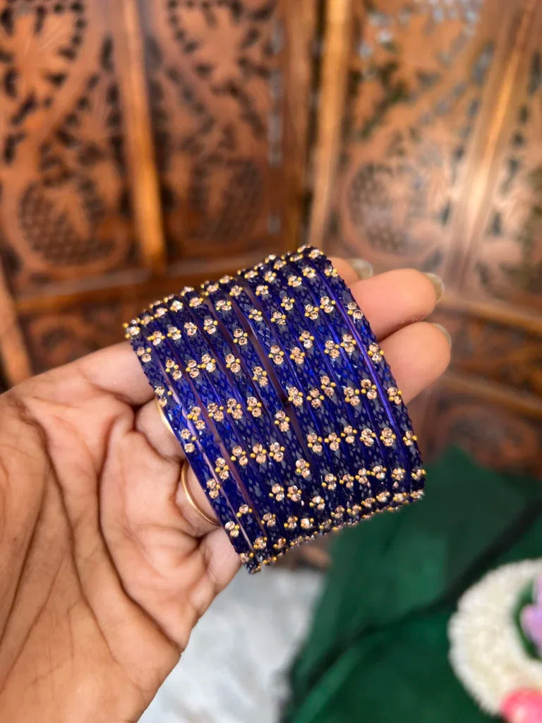 Crafted with precision, our handmade glass bangles blend tradition with elegance. Featuring vibrant hues, intricate patterns, and a smooth finish, they add a timeless charm to any look. Perfect for festive, bridal wear