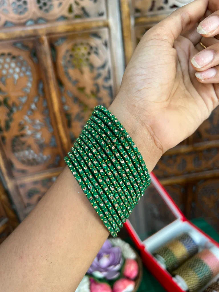 Crafted with precision, our handmade glass bangles blend tradition with elegance. Featuring vibrant hues, intricate patterns, and a smooth finish, they add a timeless charm to any look. Perfect for festive, bridal wear