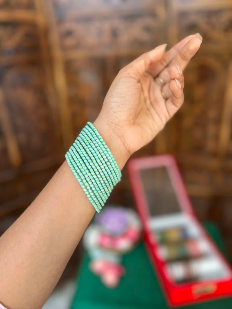 Crafted with precision, our handmade glass bangles blend tradition with elegance. Featuring vibrant hues, intricate patterns, and a smooth finish, they add a timeless charm to any look. Perfect for festive, bridal wear