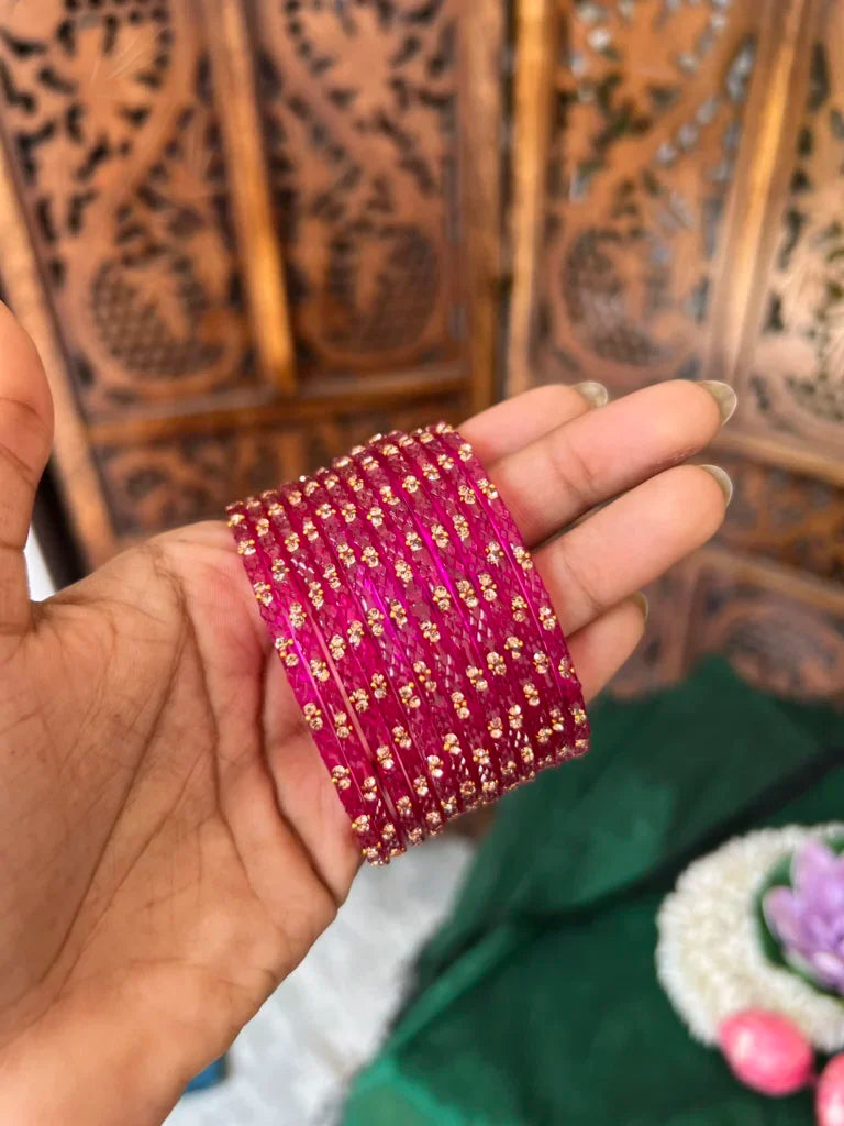 Crafted with precision, our handmade glass bangles blend tradition with elegance. Featuring vibrant hues, intricate patterns, and a smooth finish, they add a timeless charm to any look. Perfect for festive, bridal wear