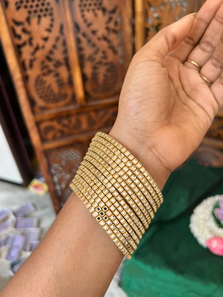 Crafted with precision, our handmade glass bangles blend tradition with elegance. Featuring vibrant hues, intricate patterns, and a smooth finish, they add a timeless charm to any look. Perfect for festive, bridal wear