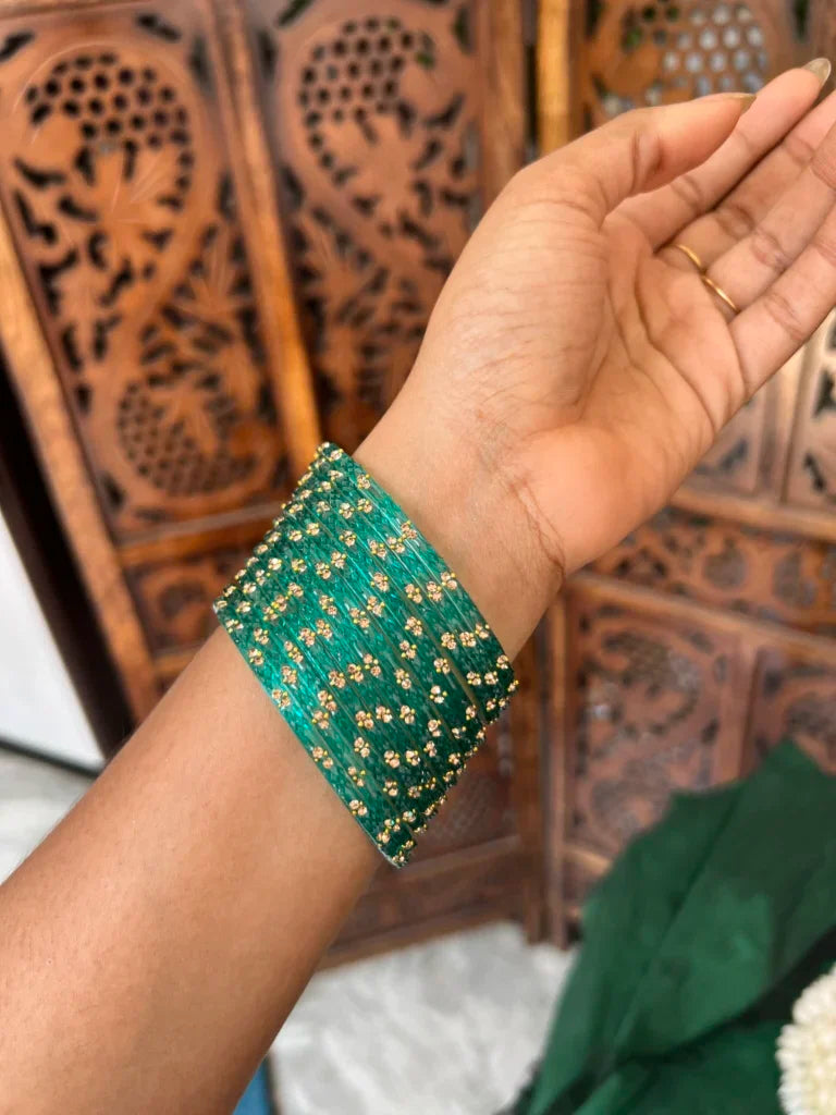 Crafted with precision, our handmade glass bangles blend tradition with elegance. Featuring vibrant hues, intricate patterns, and a smooth finish, they add a timeless charm to any look. Perfect for festive, bridal wear