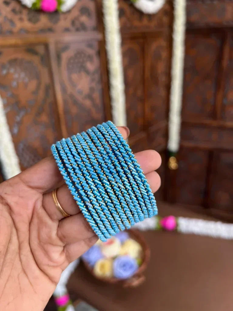 Crafted with precision, our handmade glass bangles blend tradition with elegance. Featuring vibrant hues, intricate patterns, and a smooth finish, they add a timeless charm to any look. Perfect for festive, bridal wear