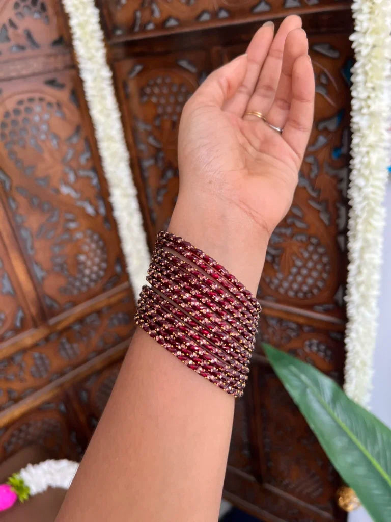 Crafted with precision, our handmade glass bangles blend tradition with elegance. Featuring vibrant hues, intricate patterns, and a smooth finish, they add a timeless charm to any look. Perfect for festive, bridal wear