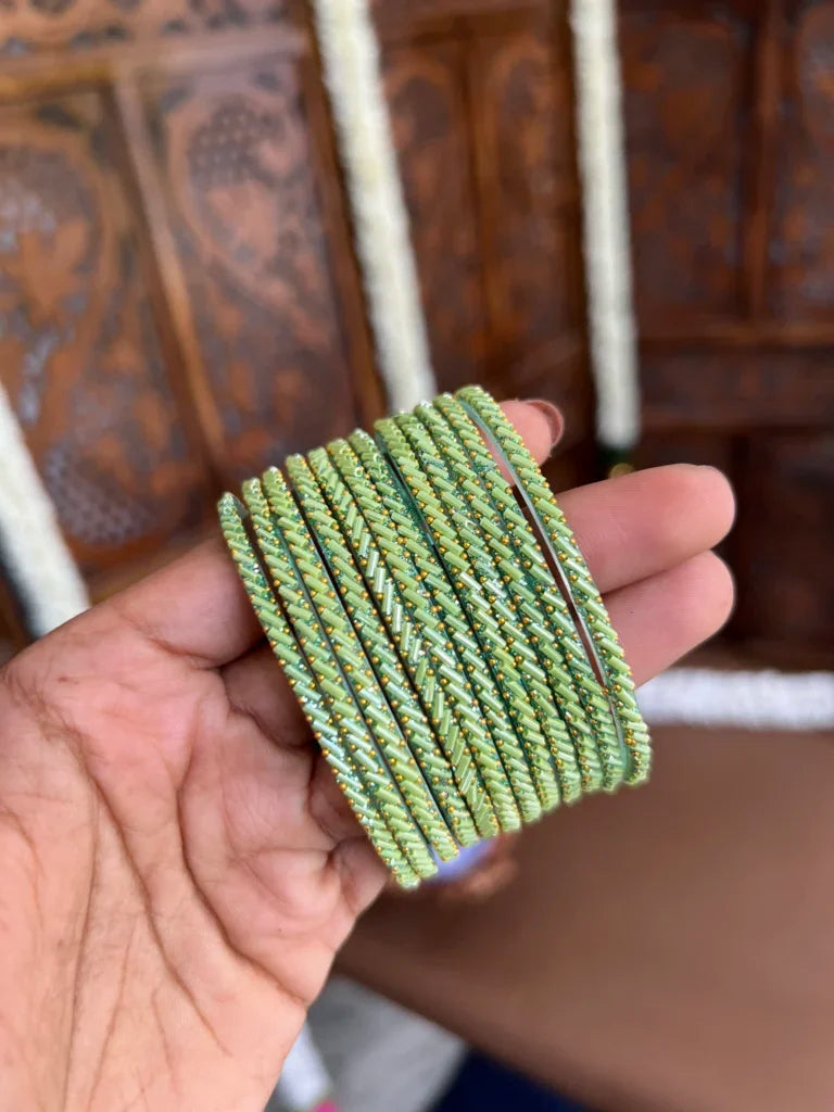 Handle with care – These bangles are made entirely of glass and can break if dropped.