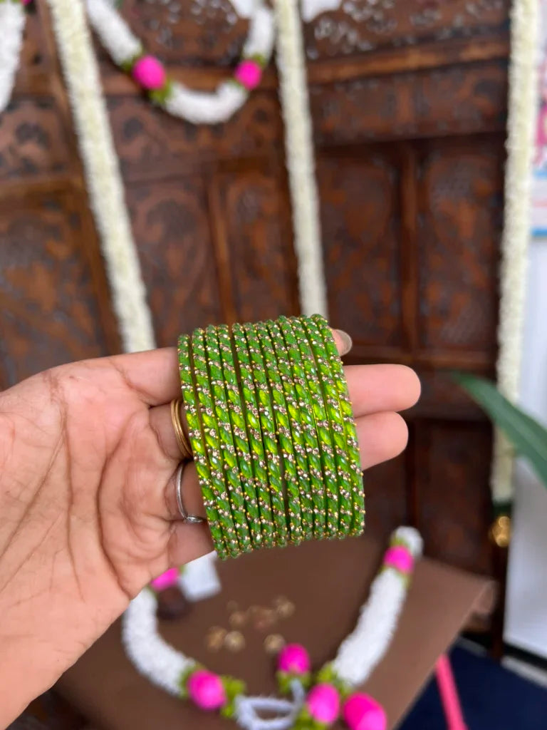 Crafted with precision, our handmade glass bangles blend tradition with elegance. Featuring vibrant hues, intricate patterns, and a smooth finish, they add a timeless charm to any look. Perfect for festive, bridal wear