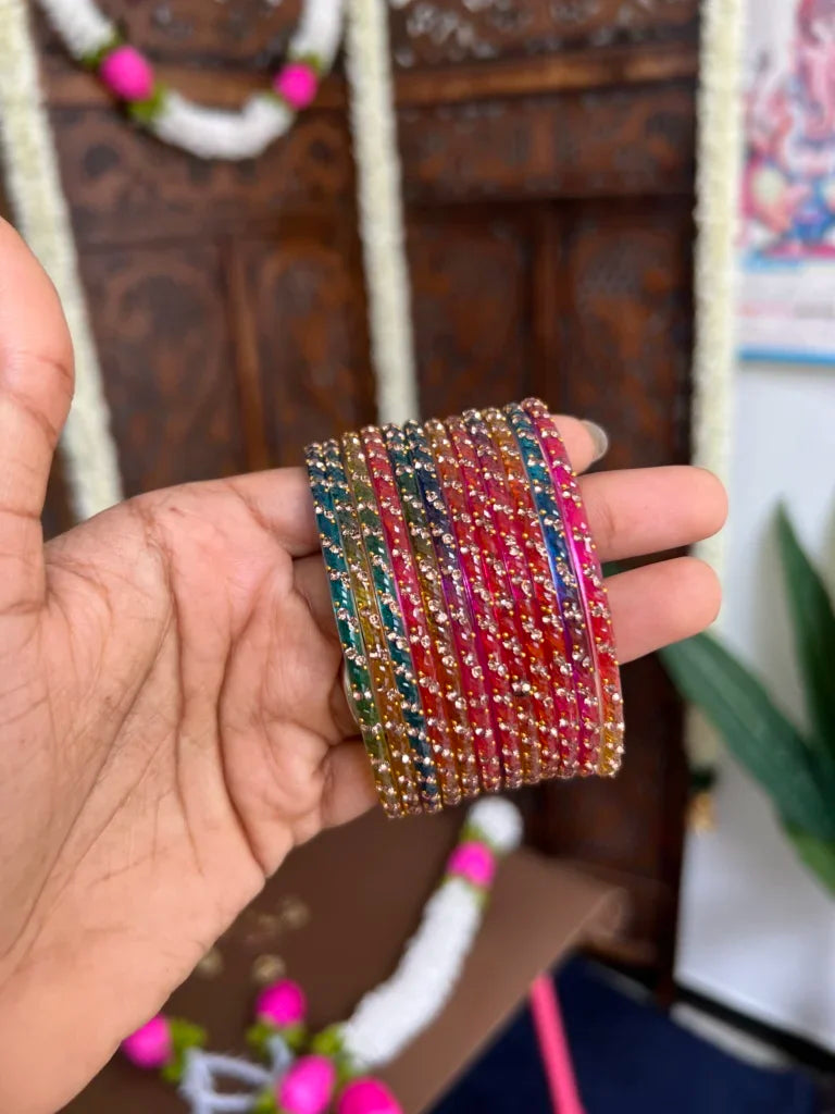 Crafted with precision, our handmade glass bangles blend tradition with elegance. Featuring vibrant hues, intricate patterns, and a smooth finish, they add a timeless charm to any look. Perfect for festive, bridal wear