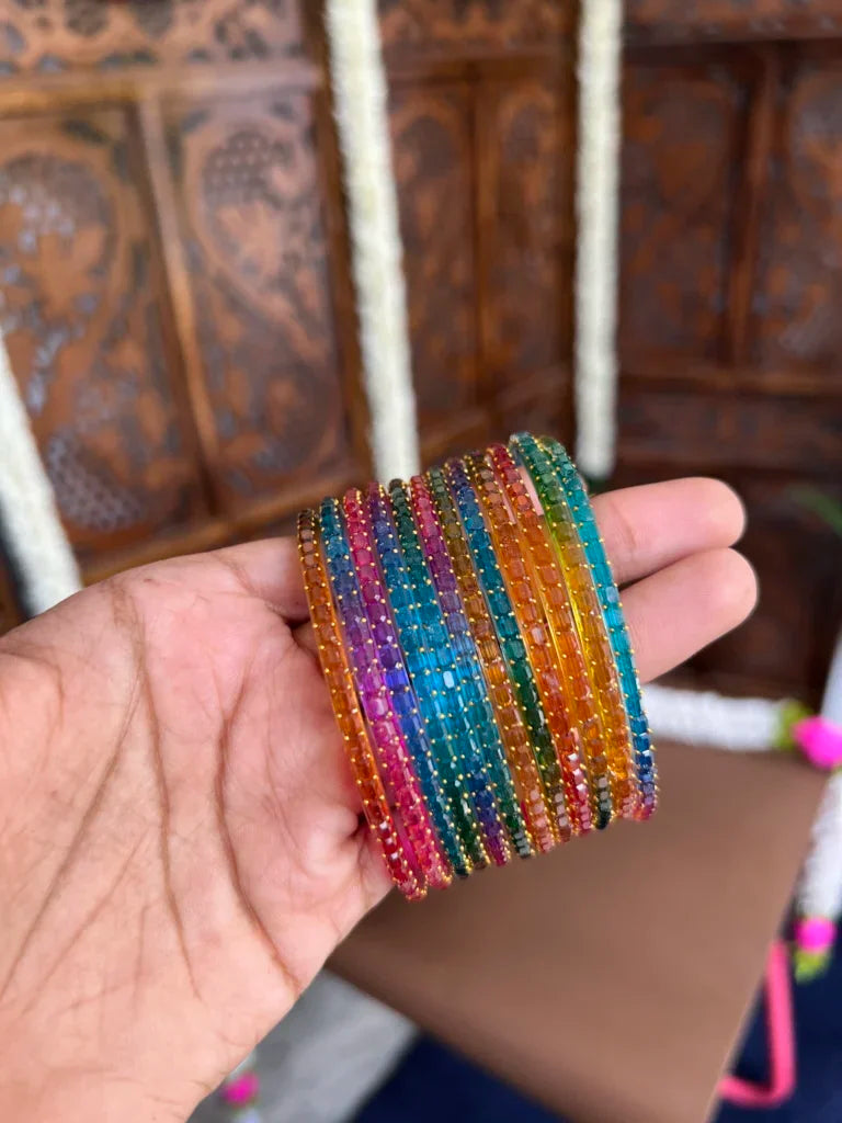Crafted with precision, our handmade glass bangles blend tradition with elegance. Featuring vibrant hues, intricate patterns, and a smooth finish, they add a timeless charm to any look. Perfect for festive, bridal wear