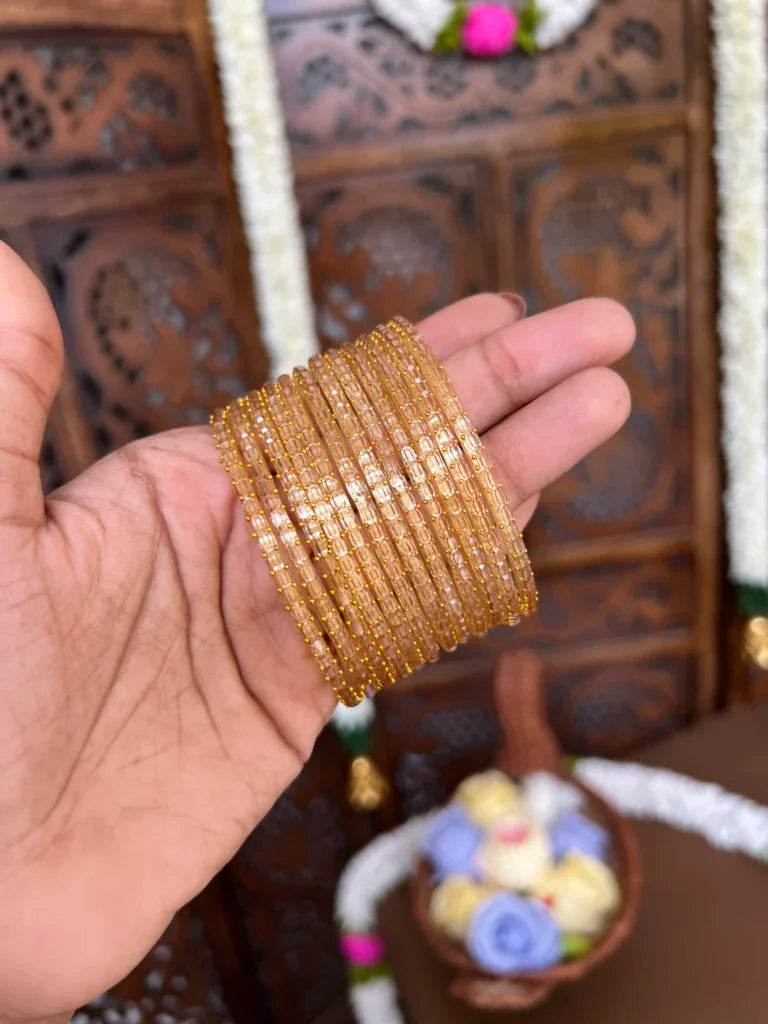 Crafted with precision, our handmade glass bangles blend tradition with elegance. Featuring vibrant hues, intricate patterns, and a smooth finish, they add a timeless charm to any look. Perfect for festive, bridal wear