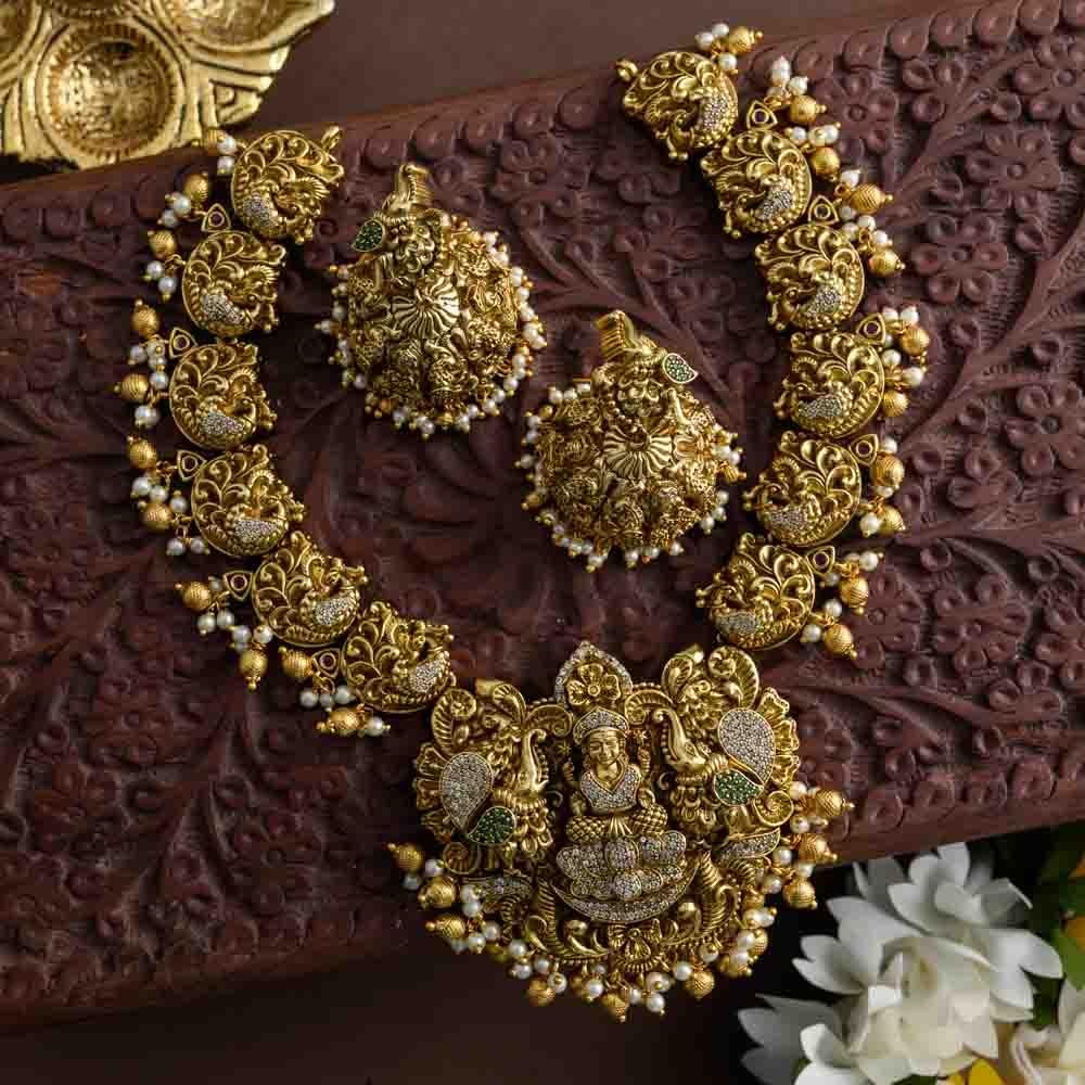 Antique gold finished temple designer 3d pattern worked bold neckpiece set