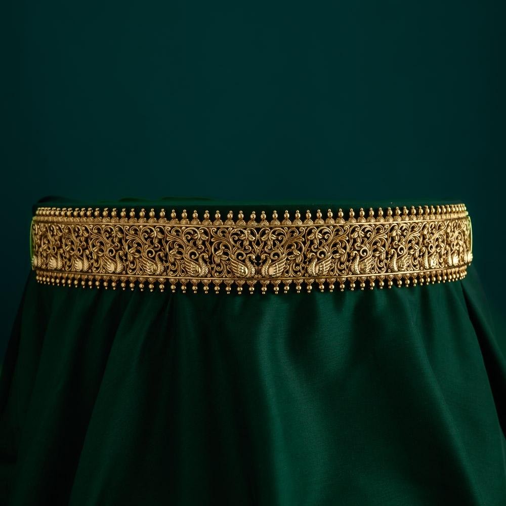 antique gold finished real gold inspired 3d peacock and floral designed bridal hipbelt